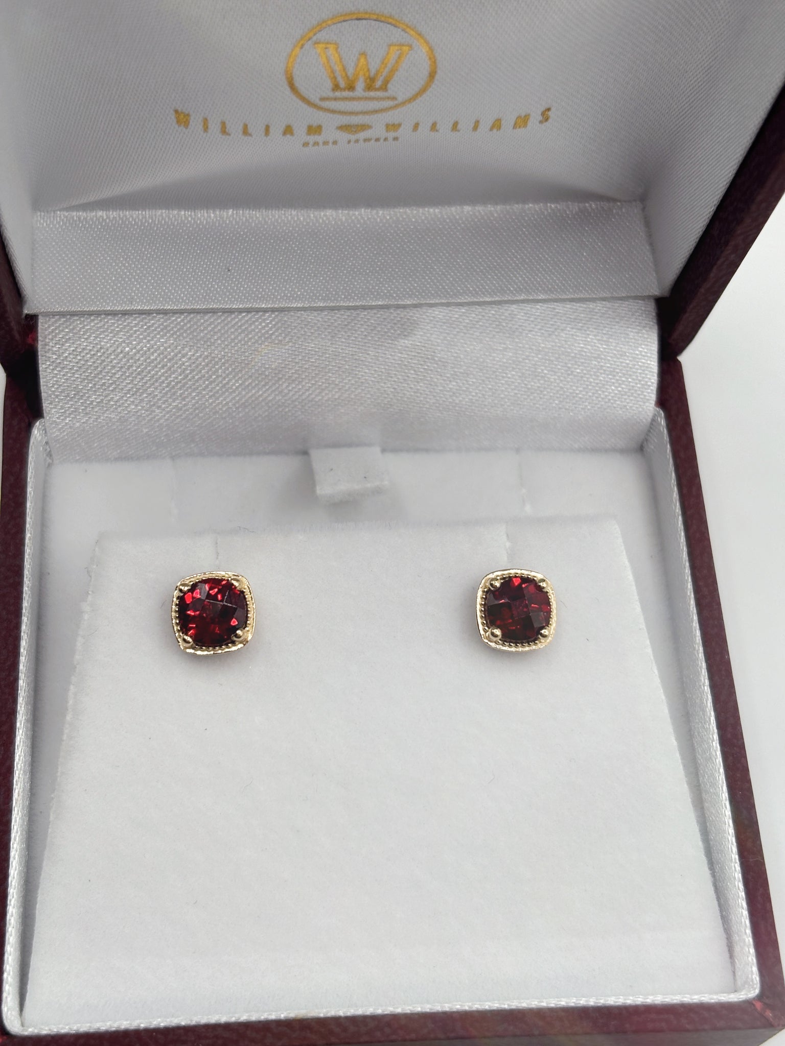 14K Yellow Gold Checkerboard-Cut Red Garnet Studs