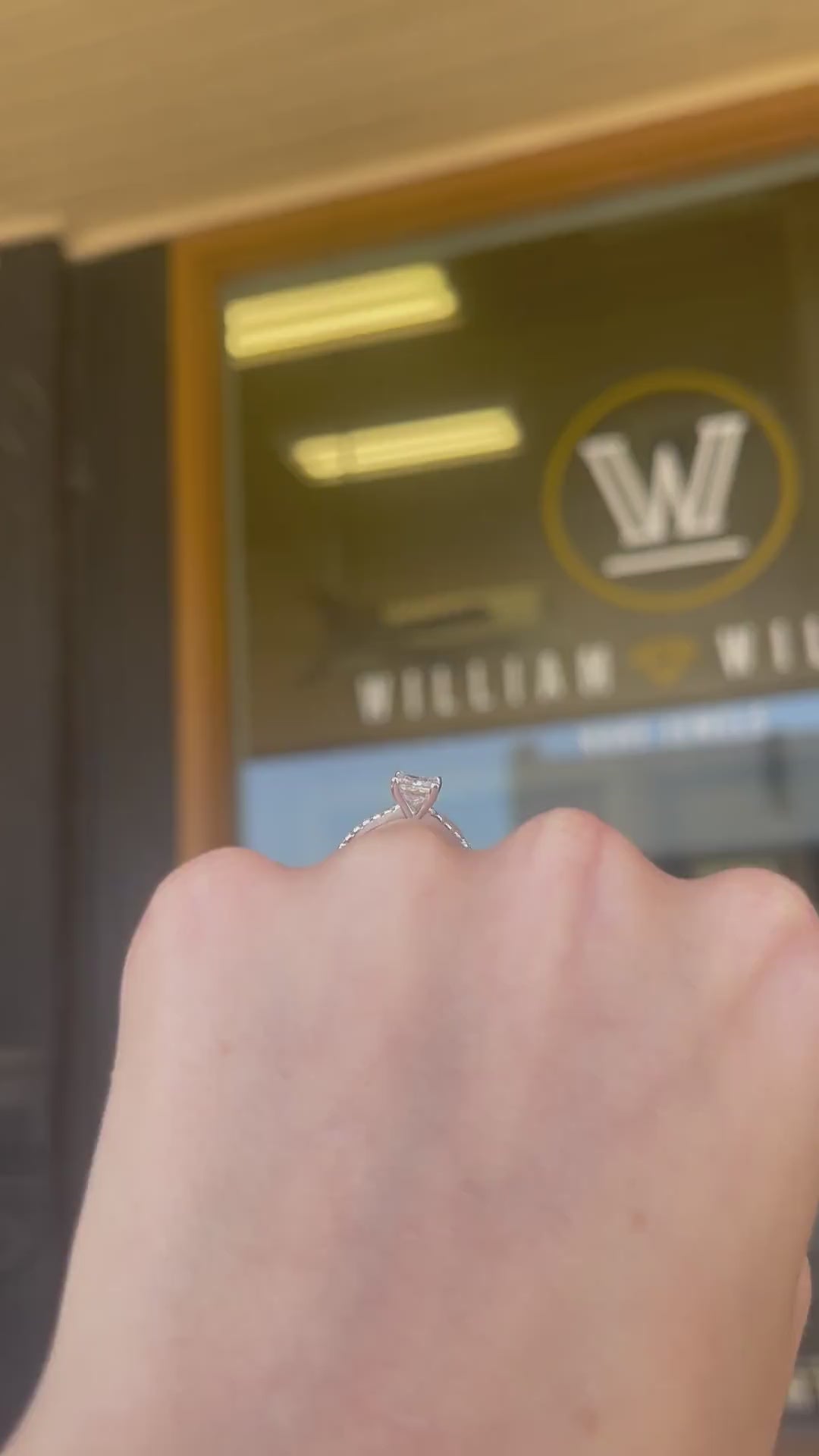 Celebrate your love with this exquisite engagement ring featuring a 0.90-carat princess-cut diamond and 0.24ctw of side stone diamonds. Set in 14K white gold, this ring highlights a lab-grown diamond with H color and VS1 clarity, offering exceptional sparkle and elegance. This timeless piece is perfect for your special proposal, blending classic design with modern sophistication. Priced at $1,785.00, this ring provides remarkable value and beauty for your engagement.